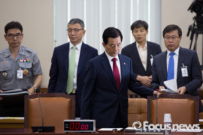 (서울=포커스뉴스) 한민구 국방부 장관이 11일 오후 서울 여의도 국회에서 열린 국방위원회 전체회의에 참석하기 위해 회의실로 들어서고 있다.