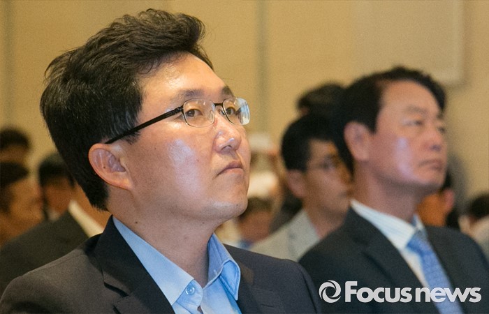 (서울=포커스뉴스) 11일 오후 서울 여의도 중소기업중앙회관에서 열린 새누리당 전국원외위원장협의회 전체회의에 전당대회 출마를 선언한 김용태(왼쪽), 한선교 의원이 자리하고 있다.