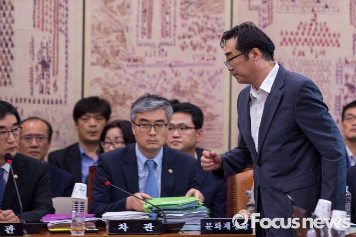 (서울=포커스뉴스) 민중을 개, 돼지로 표현한 발언으로 비판을 받고 있는 나향욱 교육부 정책기획관이 11일 오후 서울 여의도 국회에서 열린 교육문화체육관광위원회 전체회의에 참석해 교문위원들의 질의를 받기 위해 연단으로 향하고 있다.