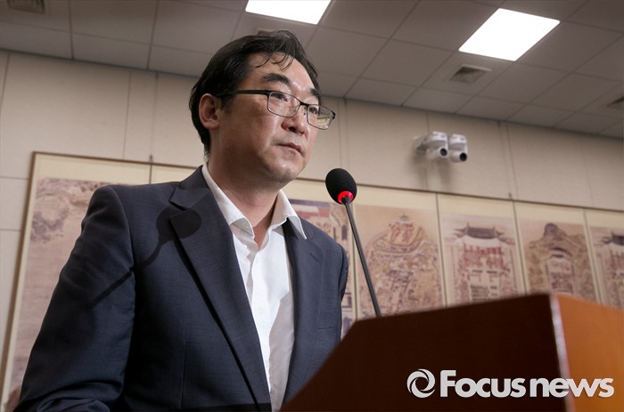 (서울=포커스뉴스) 11일 오후 서울 여의도 국회에서 열린 교육문화체육관광위원회 전체회의에 "민중은 개·돼지"라고 발언해 물의를 빚은 나향욱 교육부 정책기획관이 참석해 의원들의 질의에 답하고 있다.