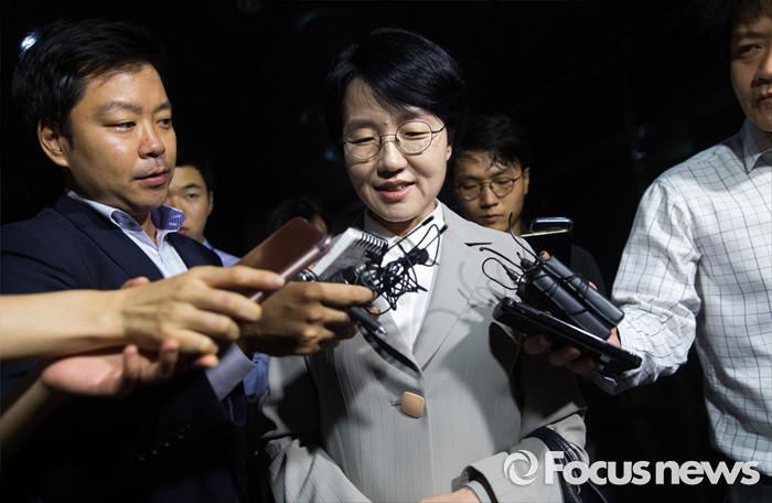 (서울=포커스뉴스) 국민의당 선거 홍보비 리베이트 수수 의혹 사건 관련 사전구속영장이 발부됐던 박선숙 국민의당 의원이 12일 오전 서울 마포구 서부지검에서 구속영장이 기각돼 귀가하고 있다.