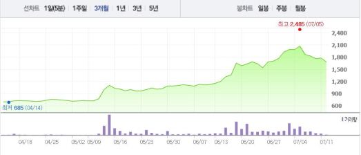 키스톤글로벌은 6월 10일부터 17일까지 6거래일 연속 상승세를 나타내는 등 꾸준히 상승 곡선을 그려왔다. 1달 전 주가인 6월10일(1125원)과 비교했을 때 무려 49.3% 상승한 수치다.