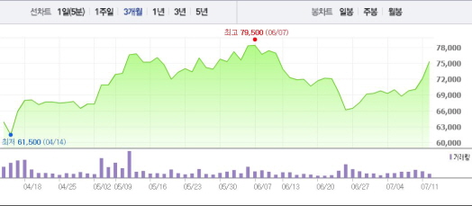 CJ E&M이 지분을 가진 넷마블게임즈의 성장도 눈에 띈다. 김 연구원은 “넷마블게임즈가 해외 지역을 중심으로 성장하고 있다”며 “이는 CJ E&M의 주가 상승으로 이어질 것”이라고 예상했다.주가흐름<사진출처=네이버 캡쳐>