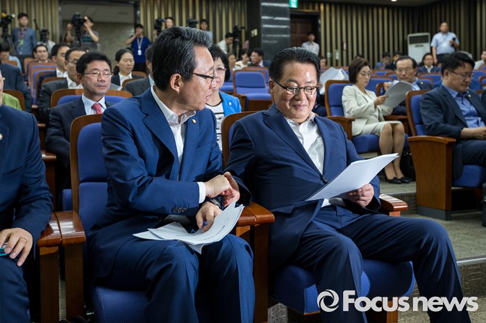 | △ 대화하는 박지원 위원장-김성식 정책위의장 |