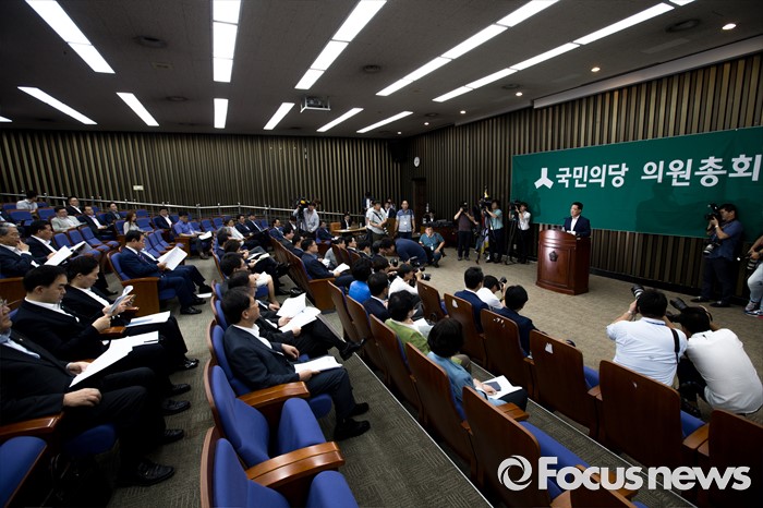 (서울=포커스뉴스) 박지원 국민의당 비상대책위원장이 12일 오전 서울 여의도 국회에서 열린 의원총회에 참석해 모두발언 하고 있다.