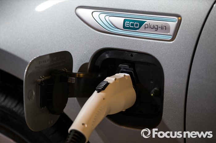 (서울=포커스뉴스) 12일 오전 서울 강남구 인터와이드 스튜디오에서 열린 '2017 K5, K5 PHEV' 출시 사진 및 영상 발표회에 K5 'PHEV' 차량이 전시되어 있다.