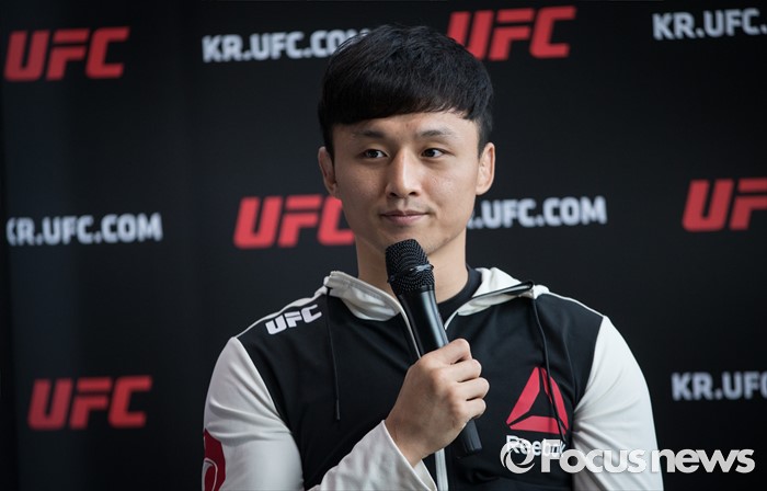 (서울=포커스뉴스) 지난 9일 티아고 타바레스(31, 브라질)를 1라운드 2분 42초에 TKO로 제압하고, UFC 3연속 KO 승리라는 쾌거를 이루고 귀국한 ‘코리안 슈퍼보이’ 최두호가 선수가 12일 오전 서울 여의도 리복 센티널 IFC에서 기자회견을 하고 있다.