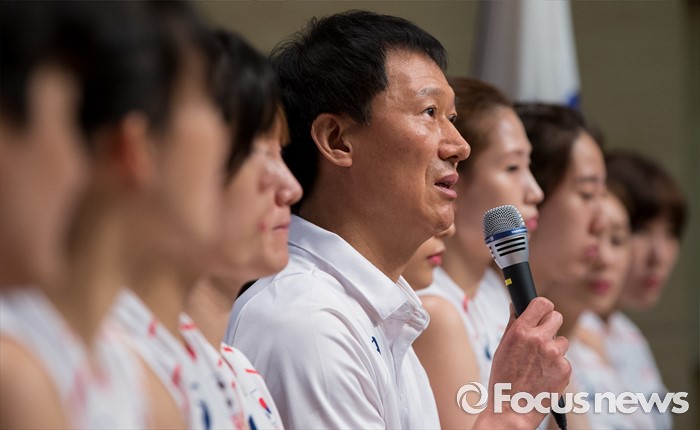 (진천=포커스뉴스) 12일 오전 충북 진천 선수촌 대강당에서 열린 '대한민국 여자배구 국가대표선수단 기자회견'에 참석한 이정철 감독이 각오를 밝히고 있다. 이날 기자회견을 가진 여자배구 선수단은 리우올림픽을 대비해 23일 네덜란드로 전지훈련을 떠날 계획이다.