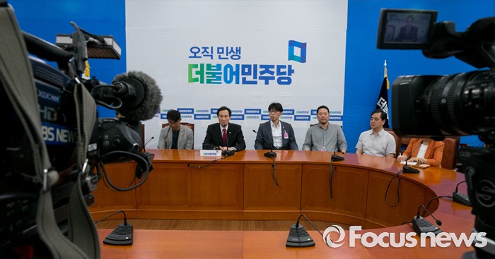 (서울=포커스뉴스) 우상호 더불어민주당 원내대표가 12일 오전 서울 여의도 국회에서 열린 MB정권 이후 해직언론인과의 면담에 참석해 인사말을 하고 있다.