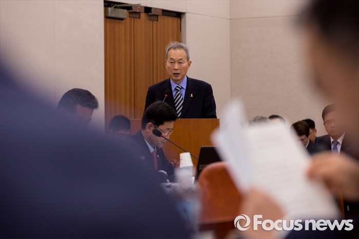 (서울=포커스뉴스) 이석태 세월호특별조사위원회 위원장이 12일 오전 서울 여의도 국회에서 열린 '농림축산해양수산위원회 전체회의'에 참석해 2015 회계연도 예비비 지출 승인 건에 대해 제안설명 하고 있다.