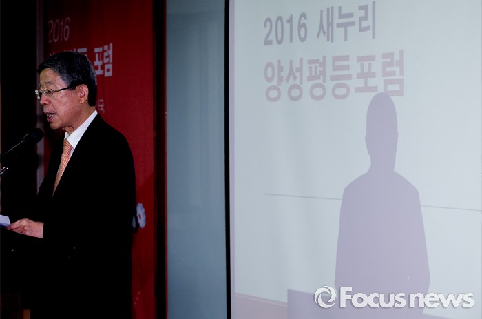 (서울=포커스뉴스) 김희옥 새누리당 혁신비대위원장이 12일 오후 서울 여의도 중소기업중앙회에서 열린 2016 양성평등 포럼에 참석해 축사를 하고 있다.