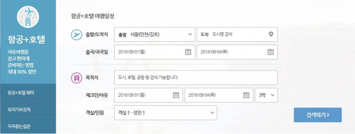 리뉴얼은 고객의 필요에 맞게 인터페이스를 개선하는데 중점을 뒀다. 홈페이지에서 원하는 항공 여정을 검색하면 해당 날짜에 투숙 가능한 추천 호텔정보와 여행 중 사용하게 되는 단품 상품에 대한 정보를 함께 제공한다. 별도 페이지 이동없이 비교 예약 후 결제까지 진행할 수 있다.