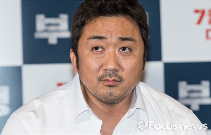 (서울=포커스뉴스) 12일 오후 서울 광진구 롯데시네마 건대입구점에서 열린 영화 '부산행' 언론시사회에 참석한 배우 마동석이 취재진에게 질문을 받고 있다.