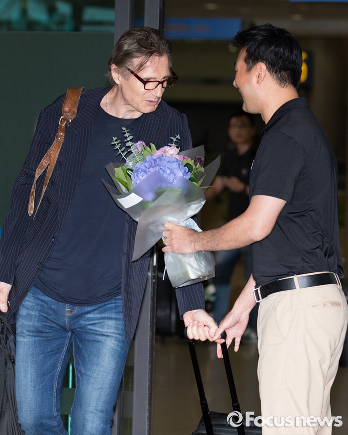 (인천공항=포커스뉴스) 영화 '인천상륙작전'에서 맥아더 장군 역을 맡은 할리우드 배우 리암 니슨이 12일 오후 인천 중구 인천국제공항으로 입국하고 있다. 리암 니슨은 영화 홍보차 2박 3일간 한국에 머물며 내한 기념 기자회견과 레드카펫 행사 등에 참여한다.