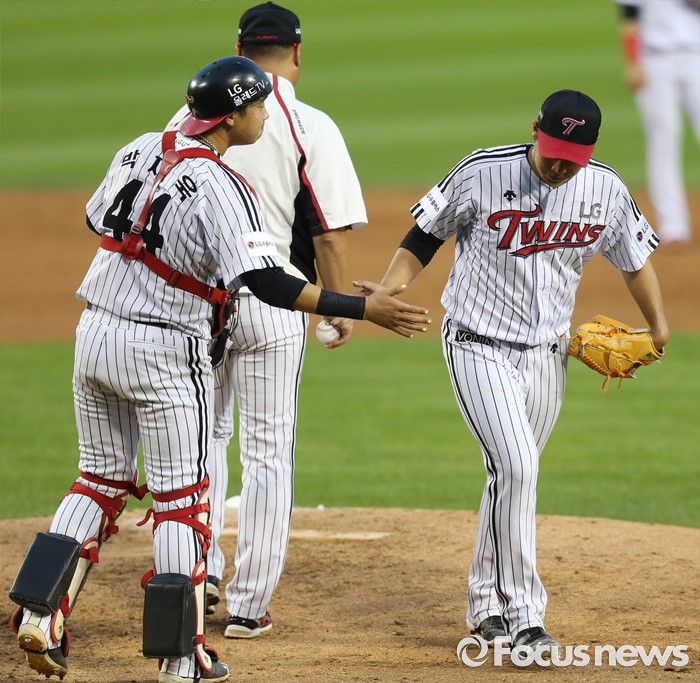 | △ 마운드 내려가는 LG 투수 유경국 |