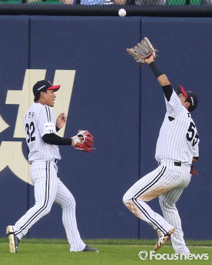 | △ 플라이볼 잡는 LG 우익수 채은성 |