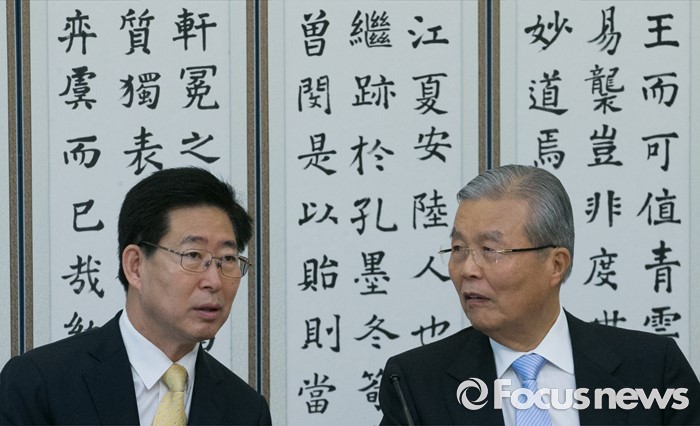 (서울=포커스뉴스) 13일 오전 서울 여의도 국회 귀빈식당에서 열린 더불어민주당 저출산 해소를 위한 국민연금 공공투자 특별위원회 1차 정책협의회에 참석한 김종인(오른쪽) 비대위 대표와 양승조 보건복지위원장이 대화하고 있다.