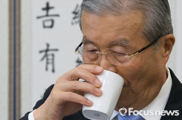 (서울=포커스뉴스) 13일 오전 서울 여의도 국회 귀빈식당에서 열린 더불어민주당 저출산 해소를 위한 국민연금 공공투자 특별위원회 1차 정책협의회에 참석한 김종인 비대위 대표가 물을 마시고 있다.