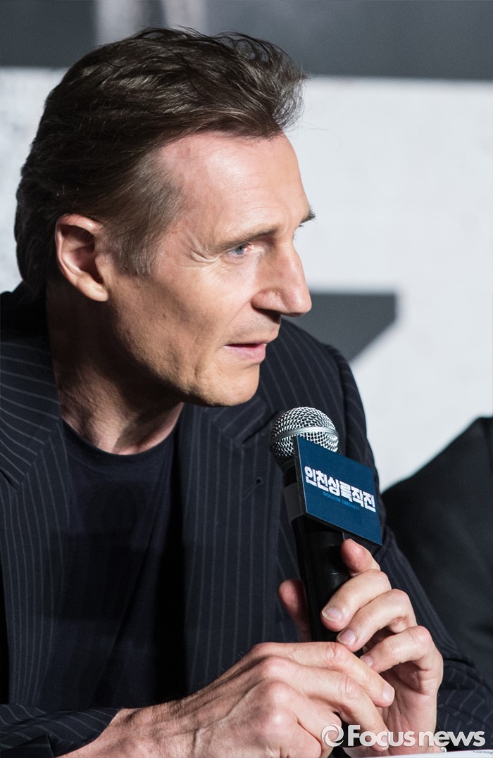 (서울=포커스뉴스) 13일 오전 서울 영등포구 콘래드 서울 호텔에서 열린 영화 '인천상륙작전' 기자간담회에 참석한 배우 리암 니슨이 인사말을 하고 있다.