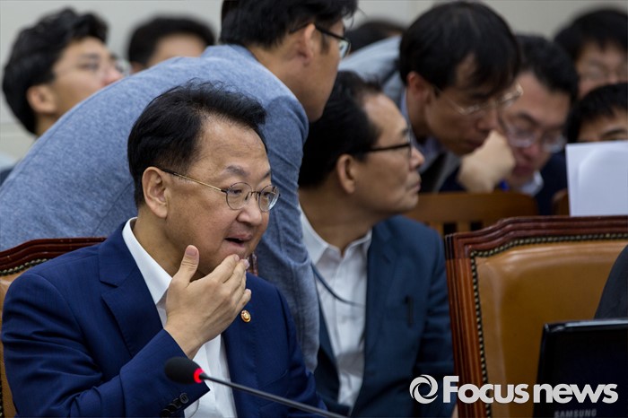(서울=포커스뉴스) 유일호 경제부총리 겸 기획재정부 장관이 13일 오후 서울 여의도 국회에서 열린 '기획재정위원회 전체회의'에 참석해 의원들의 대우조선해양에 대한 수사자료와 회계법인의 실사보고서 제출 요구하며 정상 회의 시작을 미루자 난감해 하고 있다. 이날 기재위 여야 의원들은 대우조선해양과 관련된 자료를 보지 않고는 조선업 구조조정에 대한 추경예산 편성이 어렵다는 입장을 밝혔다.
