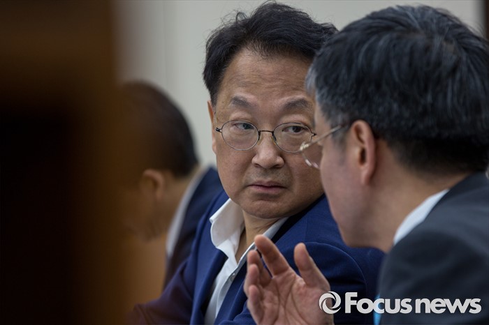 (서울=포커스뉴스) 유일호(왼쪽) 경제부총리 겸 기획재정부 장관과 최상목 기획재정부 1차관이 13일 오후 서울 여의도 국회에서 열린 '기획재정위원회 전체회의'에 참석해 대화 하고 있다. 이날 기재위 여야 의원들은 대우조선해양과 관련된 자료를 보지 않고는 조선업 구조조정에 대한 추경예산 편성이 어렵다는 입장을 밝혔다.