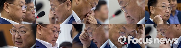 (서울=포커스뉴스) 유일호 경제부총리 겸 기획재정부 장관이 13일 오후 서울 여의도 국회에서 열린 '기획재정위원회 전체회의'에 참석해 의원들의 대우조선해양에 대한 수사자료와 회계법인의 실사보고서 제출을 요구하며 회의 시작을 미루자 난감해 하고 있다. 이날 기재위 여야 의원들은 대우조선해양과 관련된 자료를 보지 않고는 조선업 구조조정에 대한 추경예산 편성이 어렵다는 입장을 밝혔다.