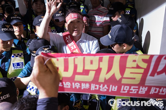 (서울=포커스뉴스) 국방부가 사드 배치 지역을 경북 성주로 확정 지은 13일 오후 서울 용산구 국방컨벤션에서 김항곤 성주군수가 국방부 관계자와 대화를 마치고 계단을 내려오고 있다.