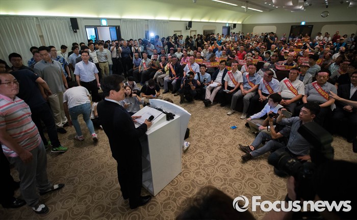 (서울=포커스뉴스) 13일 오후 황인무 국방부 차관이 경북 성주에 사드 배치를 확정한 국방부의 공식 발표 후 서울로 상경, 서울 용산 국방부 컨벤션센터를 항의 방문중인 김항곤 성주군 군수, 사회단체장 및 군민을 찾아 대화를 나누고 있다.