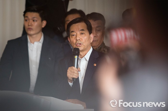 (서울=포커스뉴스) 13일 오후 한민구 국방부 장관이 경북 성주에 사드 배치를 확정한 국방부의 공식 발표 후 서울로 상경, 서울 용산 국방부 컨벤션센터를 항의 방문중인 김항곤 성주군 군수, 사회단체장 및 군민을 찾아 대화를 나누고 있다.