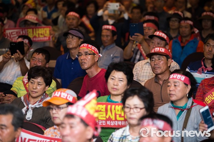 (서울=포커스뉴스) 한민구 국방부 장관이 13일 오후 서울 용산구 국방컨벤션센터에서 사드 배치에 항의 방문 중인 김항곤 성주군수 등 사회단체장 및 군민들에게 사과 발언을 하고 있다. 국방부는 이날 경북 성주군을 고고도 미사일 방어(사드·THAAD)체계 배치 지역이라고 공식 발표했다.
