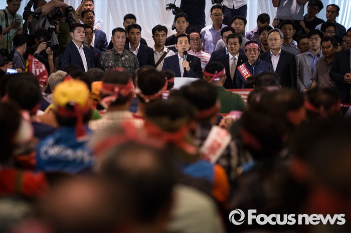 (서울=포커스뉴스) 한민구 국방부 장관이 13일 오후 서울 용산구 국방컨벤션센터에서 사드 배치에 항의 방문 중인 김항곤 성주군수 등 사회단체장 및 군민들과 대화하고 있다. 국방부는 이날 경북 성주군을 고고도 미사일 방어(사드·THAAD)체계 배치 지역이라고 공식 발표했다.