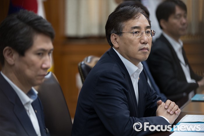 (서울=포커스뉴스) 이석준 국무조정실장이 14일 오전 서울 종로구 정부서울청사에서 열린 대구공항 통합이전 TF 첫 회의 시작을 기다리고 있다.