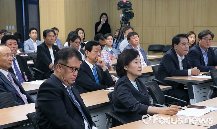 (서울=포커스뉴스) 14일 오전 서울 여의도 국회 의원회관에서 한국적 제3의 길 후원으로 열린 '개헌을 말하다'에 참석한 박영선 더불어민주당 의원 등이 김형오 전 국회의장의 개헌의 필요와 방향에 대한 강연을 듣고 있다.