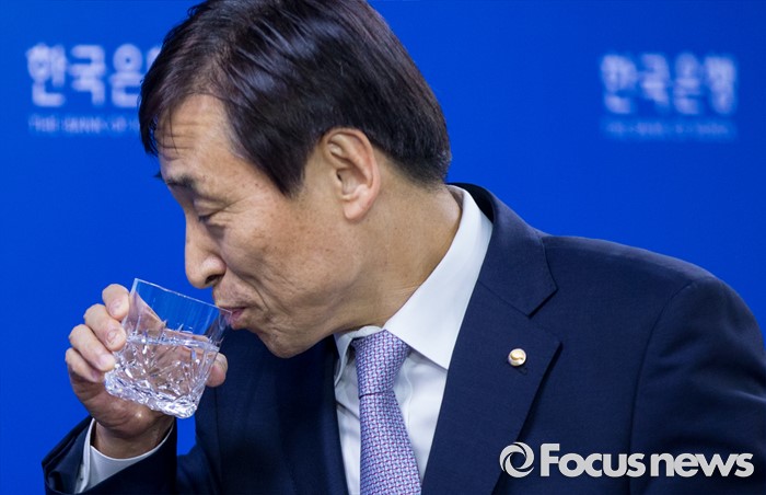 (서울=포커스뉴스) 이주열 한국은행 총재가 14일 오전 서울 중구 한국은행에서 통화정책방향에 대해 설명하기 전 물을 마시고 있다. 한은은 이날 열린 제14차 금융통화위원회의를 통해 기준금리를 현 수준(1.25%)으로 동결했다.