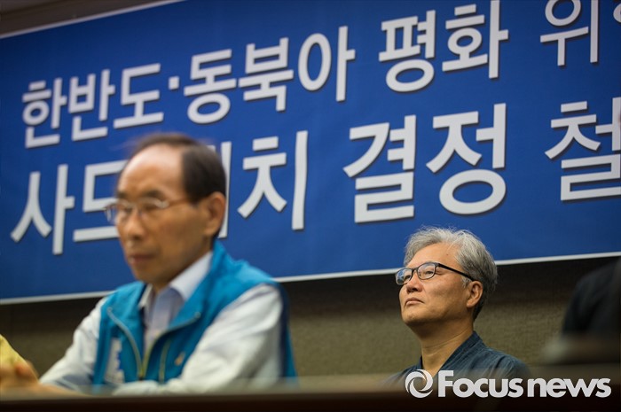 (서울=포커스뉴스) 14일 오전 서울 중구 한국프레스센터에서 시민 사회 각계 인사들이 모여 '한반도, 동북아 평화 위협하는 사드 배치 결정 철회 촉구' 시국회의를 하고 있다.