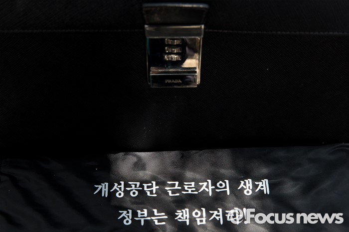 (서울=포커스뉴스) 14일 오후 서울 영등포구 국회의사당역 인근에서 개성공단 비상대책위원회원들이 정부의 폐쇄 조치에 따른 재산권 보호를 촉구하며 집회를 하고 있다.