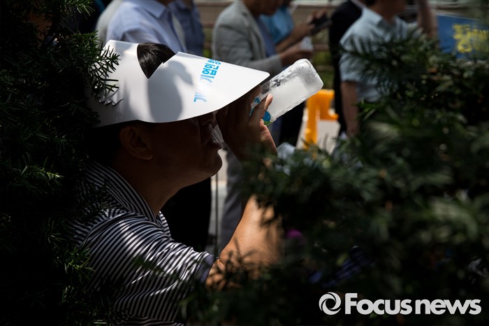 (서울=포커스뉴스) 14일 오후 서울 영등포구 국회의사당역 인근에서 개성공단 비상대책위원회원들이 정부의 폐쇄 조치에 따른 재산권 보호를 촉구하며 집회를 하고 있다.