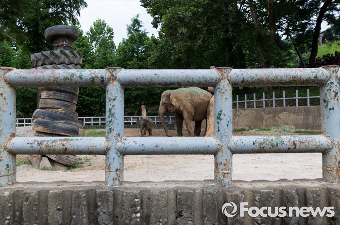 (과천=포커스뉴스) 14일 오후 경기도 과천 서울대공원에서 지난달 24일에 태어난 새끼 아시아 코끼리(암컷)가 가자바(어미)와 함께 야외 방사장을 뛰놀고 있다. 이 아기코끼리는 '멸종위기에 처한 야생 동식물의 국제 거래에 관한 협약(CITES)' 1급 보호종으로 지정된 아시아코끼리다.