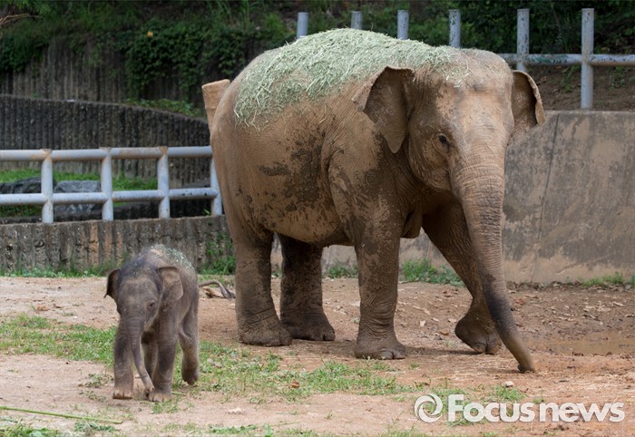 (과천=포커스뉴스) 14일 오후 경기도 과천 서울대공원에서 지난달 24일에 태어난 새끼 아시아 코끼리(암컷)가 가자바(어미)와 함께 야외 방사장을 뛰놀고 있다. 이 아기코끼리는 '멸종위기에 처한 야생 동식물의 국제 거래에 관한 협약(CITES)' 1급 보호종으로 지정된 아시아코끼리다.