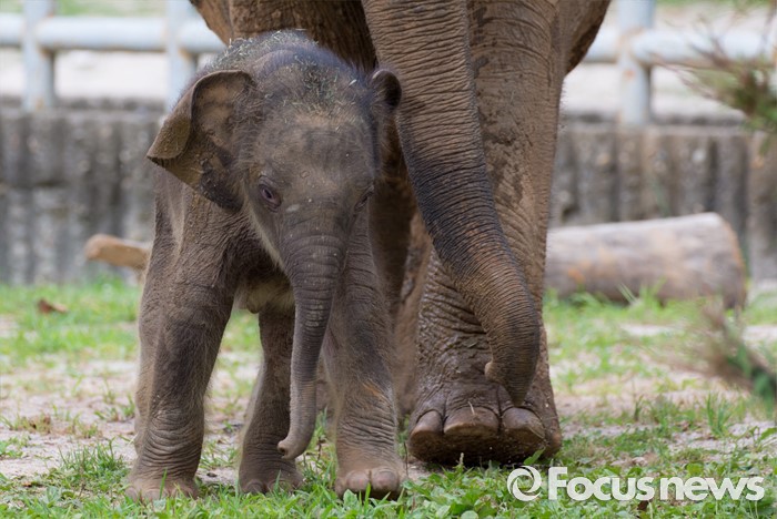 (과천=포커스뉴스) 14일 오후 경기도 과천 서울대공원에서 지난달 24일에 태어난 새끼 아시아 코끼리(암컷)가 야외 방사장을 뛰놀고 있다. 이 아기코끼리는 '멸종위기에 처한 야생 동식물의 국제 거래에 관한 협약(CITES)' 1급 보호종으로 지정된 아시아코끼리다.
