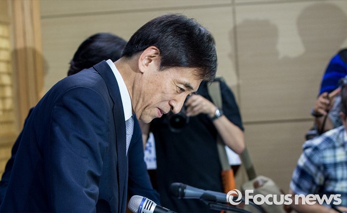 (서울=포커스뉴스) 이주열 한국은행 총재가 14일 오후 서울 중구 한국은행에서 최근의 물가안정목표제 운영상황에 대해 설명하기 위해 착석하고 있다.
