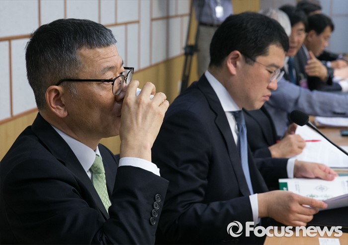(서울=포커스뉴스) 14일 오후 서울 여의도 국회 의원회관에서 국민의당 주최로 열린 '국민의 동의없는 사드 배치 올바른 결정인가' 토론회에 참석한 류제승 국방부 국방정책실장이 물을 마시고 있다.
