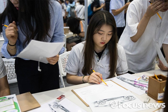 (서울=포커스뉴스) 14일 오후 서울 강남구 코엑스에서 열린 전문대학 엑스포에 참가한 한 학생이 산업디자인 과정을 체험하고 있다.