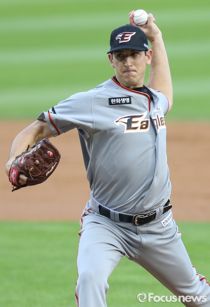 (서울=포커스뉴스) 14일 서울 잠실구장에서 열린 2016 프로야구 한화-LG 경기에서 1회말 한화 선발투수 서캠프가 투구하고 있다.