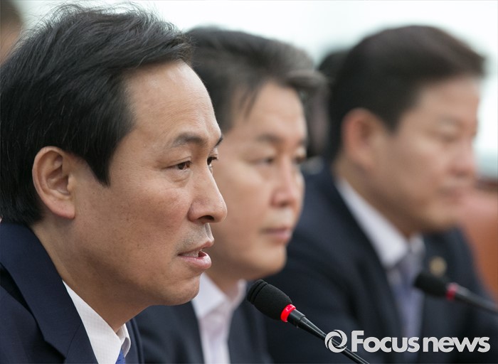 (서울=포커스뉴스) 15일 오전 서울 여의도 국회에서 열린 더불어민주당 사드대책위원회의에 참석한 우상호 원내대표가 모두발언을 하고 있다.