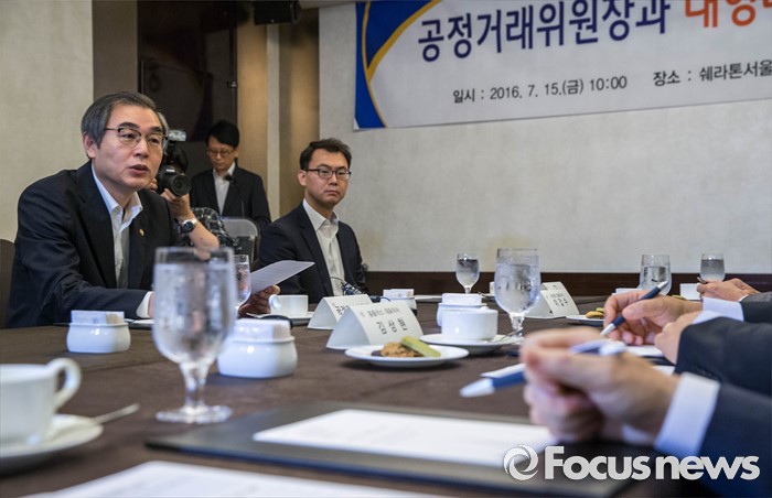 (서울=포커스뉴스) 15일 오전 서울 서초구 쉐라톤팔래스호텔에서 열린 '대형마트CEO 간담회'에 참석한 정재찬 공정거래위원장이 모두발언을 하고 있다 .