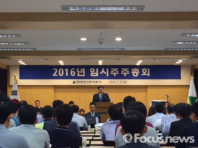 한편 이날 주총에 참석한 한 주주는 "두 차례 감자에 이어 유상 증자까지 하면서 일반 주주들의 재산 손실이 매우 크다"며 "대주주 지분을 전액 감자하지 않고 왜 7대 1로 감자하느냐"라고 항의하기도 했다.이백훈 현대상선 대표이사가 15일 현대상선 본사에서 열린 대주주 7대 1 감자 임시주주총회에서 발언하고 있다. 2016.7.15. 김현이 기자