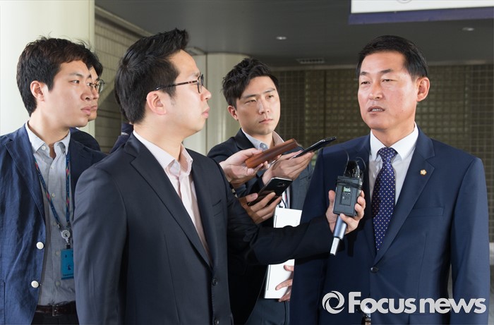 (서울=포커스뉴스) 지역테니스동호회 행사에 참석해 기부행위를 한 혐의로 기소된 황영철 새누리당 의원이 15일 오전 서울고등법원에서 열린 항소심 선고 공판을 마친 뒤 취재진 질문에 답하고 있다.