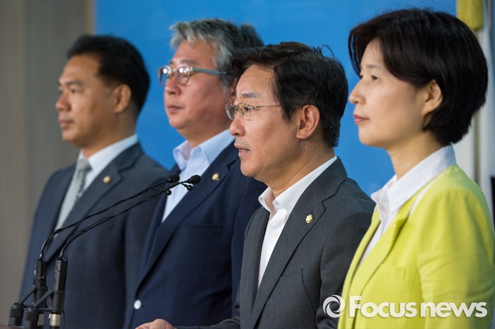 (서울=포커스뉴스) 국회 법제사법위원회 더불어민주당 간사 박범계(오른쪽 두 번째) 의원을 비롯한 야당 법사위 소속 의원들이 15일 오전 서울 여의도 국회에서 진경준 검사장 사건과 관련해 법무부 장관 및 검찰총장 사죄 촉구 기자회견을 하고 있다.