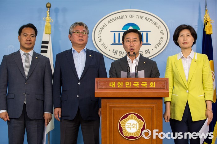 (서울=포커스뉴스) 국회 법제사법위원회 더불어민주당 간사 박범계(오른쪽 두 번째) 의원을 비롯한 야당 법사위 소속 의원들이 15일 오전 서울 여의도 국회에서 진경준 검사장 사건과 관련해 법무부 장관 및 검찰총장 사죄 촉구 기자회견을 하고 있다.